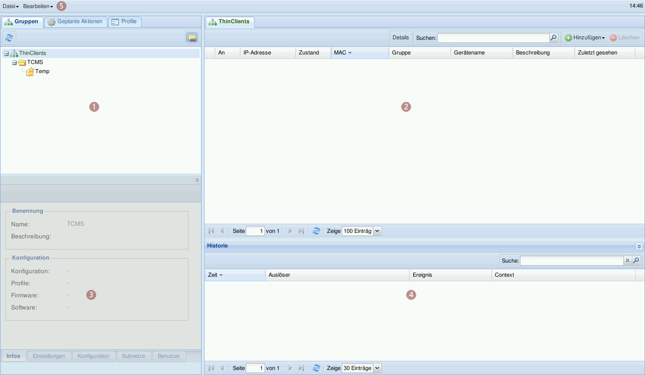 Auf der rechten Seite der Menüleiste finden Sie die aktuelle Zeit des TCMS.