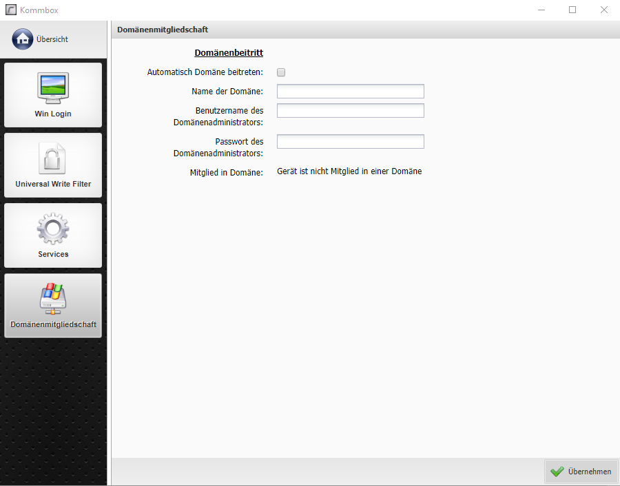 Automatisch Domäne beitreten: Ist dieser Haken gesetzt, tritt der PC sofort der angegebenen Domäne bei und startet neu.