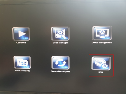 Wechseln Sie anschließend nochmal über ESC -Taste in BIOS Menü. Wählen Sie dieses Mal die Option „ SCU “